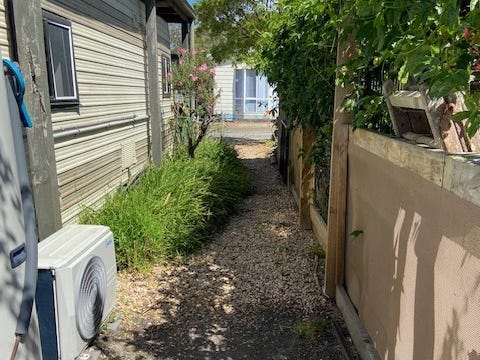 The bathroom/ensuite is in dire need of a 're-furb' but does include shower recess, vanity, toilet, provision for washing machine and small linen cupboard. The Heat Pump Hot Water service is also only a few months old!